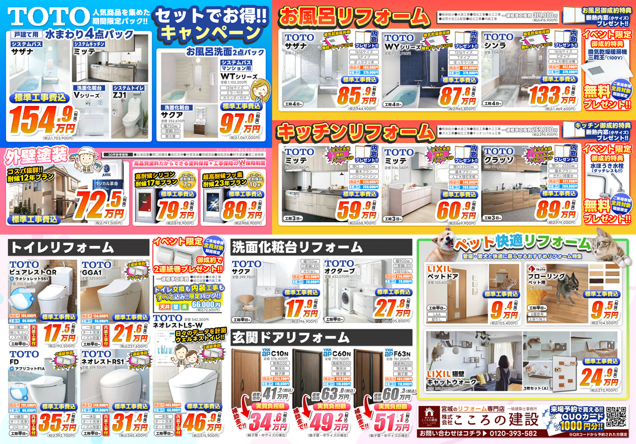 ショールームイベント お問い合わせ 無料見積り・相談 電話で見積り・相談 0120-393-582 【受付】8:30~18:30 祝日9:00~17:00【定休日】盆お・年末年始 電話で見積り・相談 HOME最新イベント情報 最新イベント情報 表面 裏面 こころの建設について 会社案内代表挨拶会社概要企業理念アクセスマップ コンセプト スタッフ紹介 施工事例 施工事例一覧 給湯器 勝手口 内窓 外部リフォーム 内装工事 トイレリフォーム 屋根重ね葺き 玄関ドア交換 屋根塗装 キッチン マンションリフォーム 外壁張り替え 外壁塗装 屋根葺き替え 浴室 水まわり お客様の声 お客様の声一覧 コンテンツ お問い合わせ お問い合わせ 無料お見積もり HOME 会社案内 会社案内代表挨拶会社概要企業理念アクセスマップ コンセプトスタッフ紹介 施工事例 お客様の声 コンテンツ リフォームメニュー 一覧暖か設備リフォームショールームイベント情報LINE友だち登録キャンペーンLINEで無料相談・簡単見積【屋根・外壁】塗装セミナーブログ お問い合わせ お問い合わせ無料お見積もり