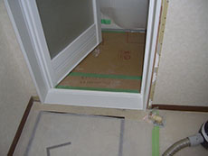 ユニットバスの出入り口枠を造作しています、これでユニットバスの完成です。