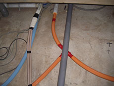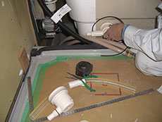 給排水配管工事中です、新しいユニットバスに合うように配管関係を切り回しいたします。