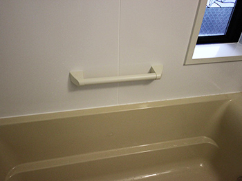 浴槽横に手摺も付き、浴槽内から状態を起こすときや、出るときもこれがあるだけで楽チンです。