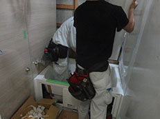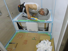 どんどん組み立てていきます。浴室リフォームは二人一組の作業員でユニットバス組立て作業をしていきます。