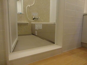 マンションなので床の高さが決まってしまいます、戸建てと違い段差ができることが殆どです。このあたりがマンション浴室リフォームの残念なところです。