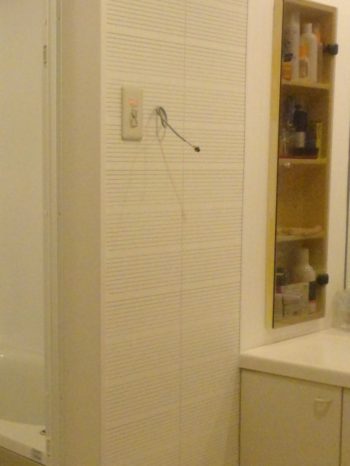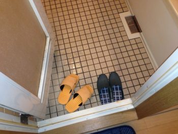 次の日も水気が取れなくスリッパ無しではぬれてしまいます。 換気扇とタイル床のダブルパンチです。
