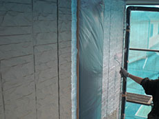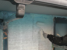 養生完了後軒天の塗装をしていきます。2回塗りとなります。