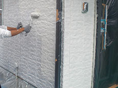 外壁塗装2回目上塗りです。一級塗装技能士の腕の振るい時です。丁寧に塗っていきます。