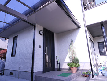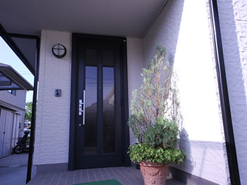 玄関廻りがガイナ外壁塗装で高級感がより一層ましたようです。
