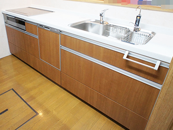 リビングステーションSはもちろんオールスライド収納タイプです。食洗機も設置されておりフル装備仕様となっています。